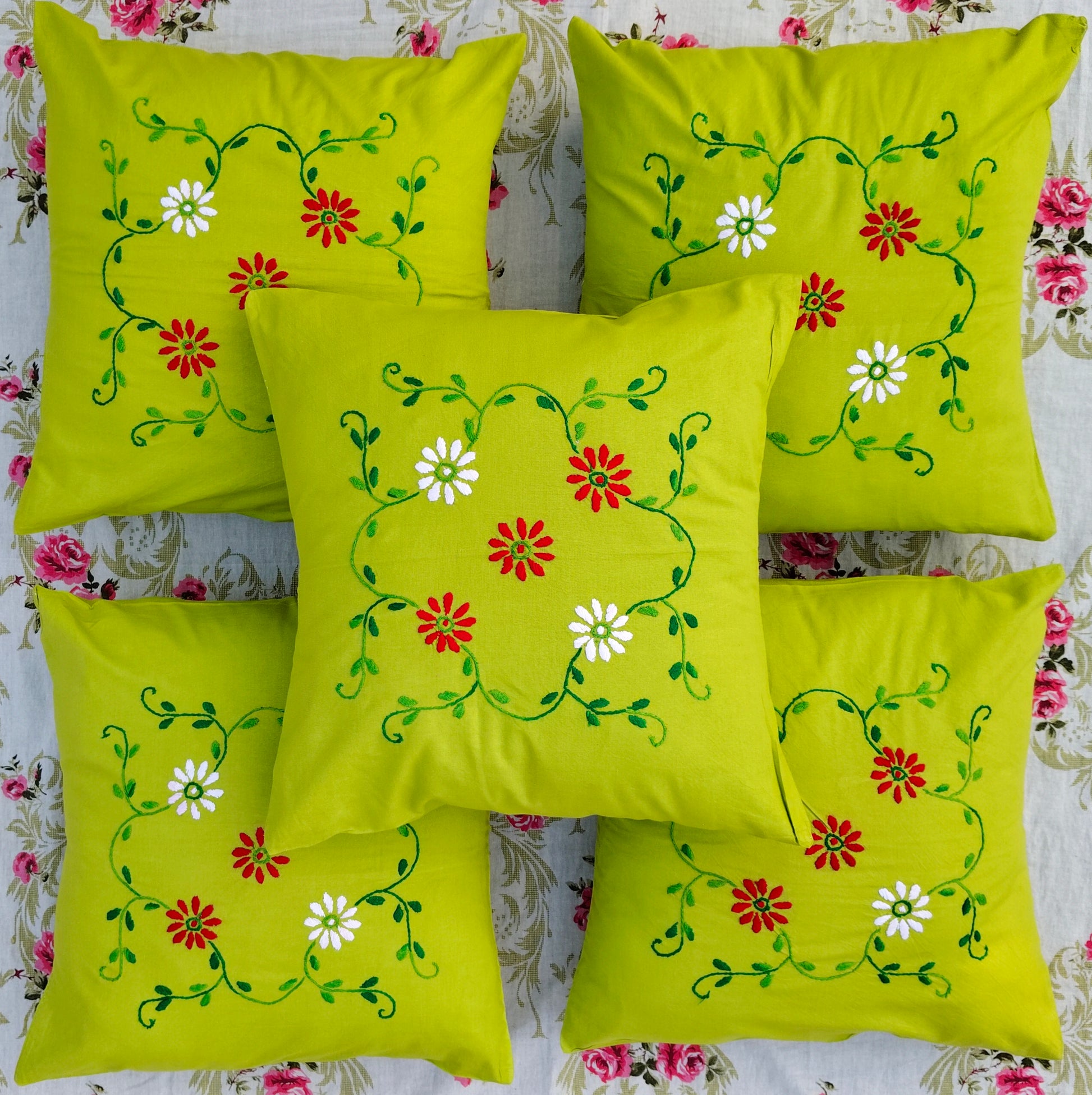 Hand Embroidered Cotton Cushion Covers (Set of 5)