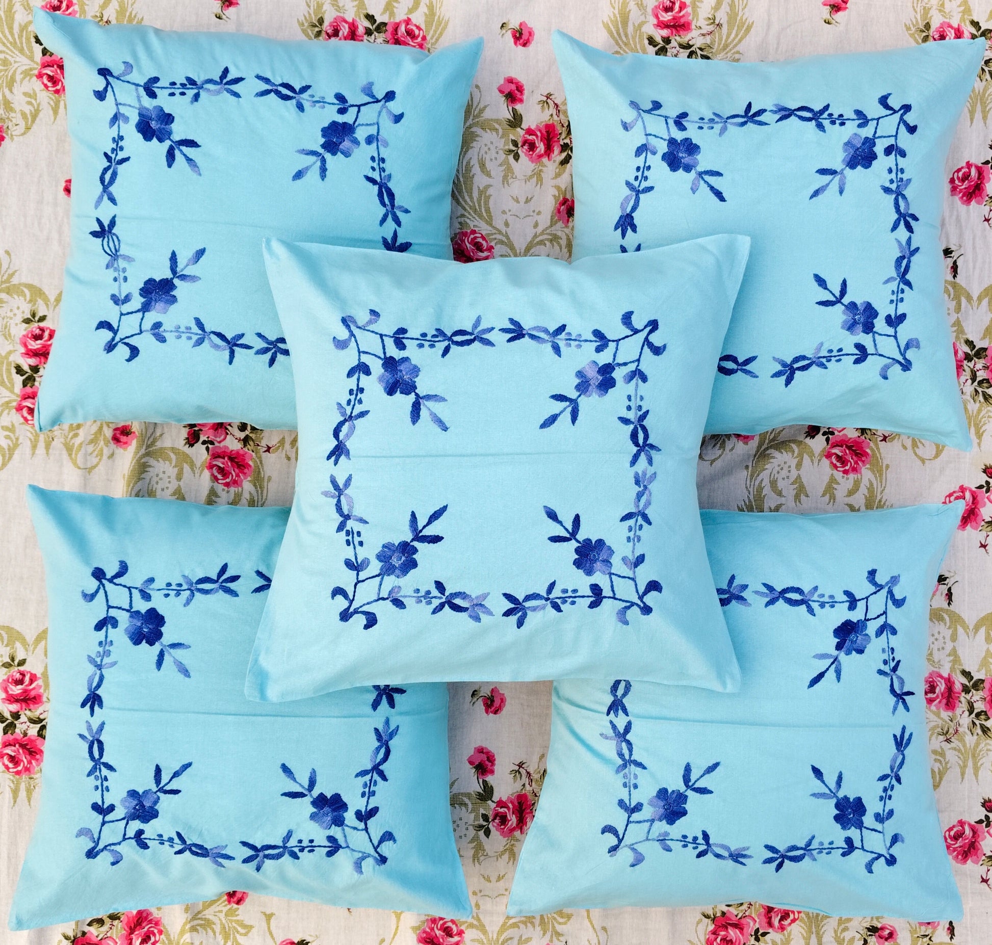 Hand Embroidered Cotton Cushion Covers (Set of 5)