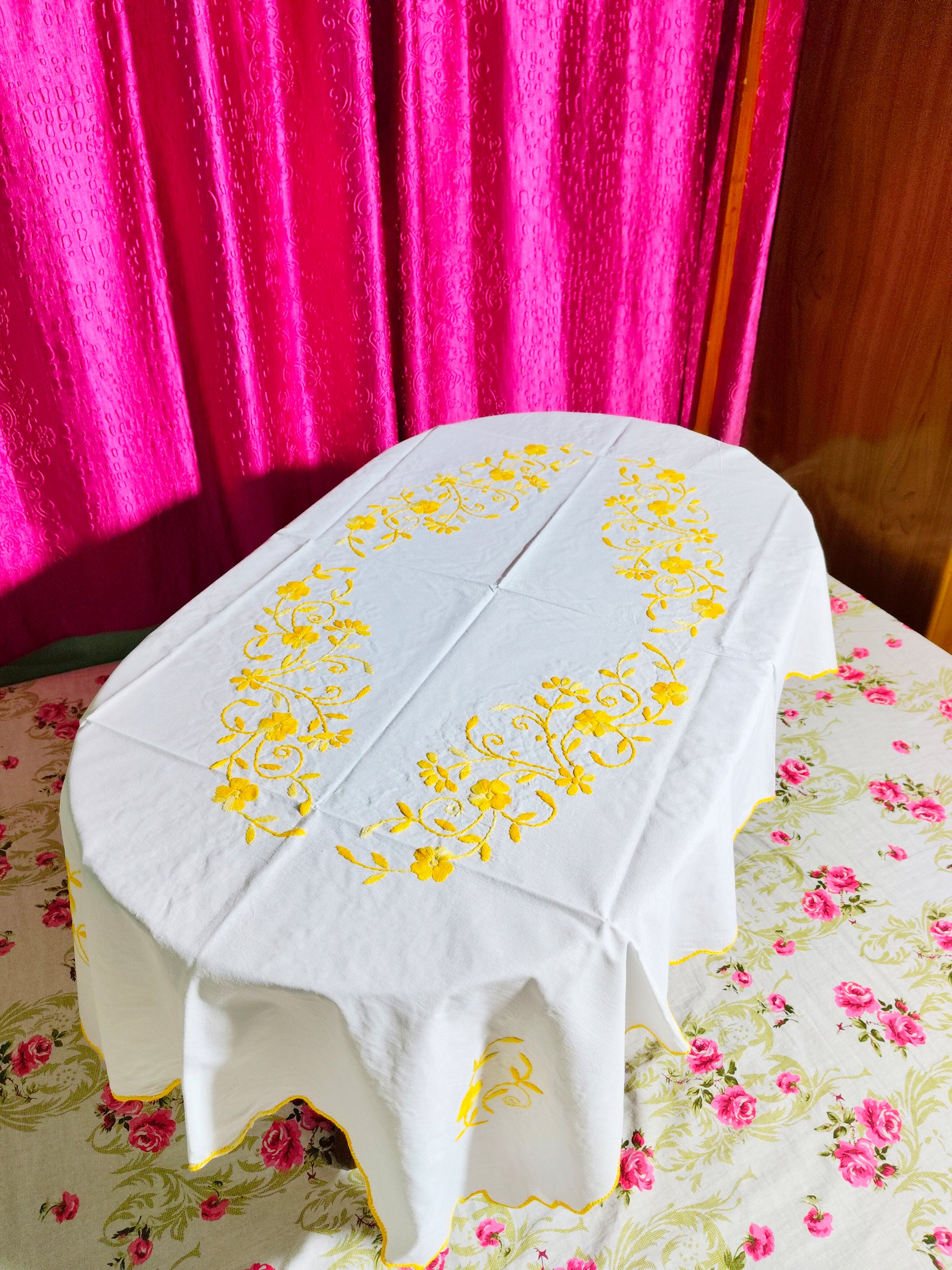 Hand Embroidered Floral Table Cover