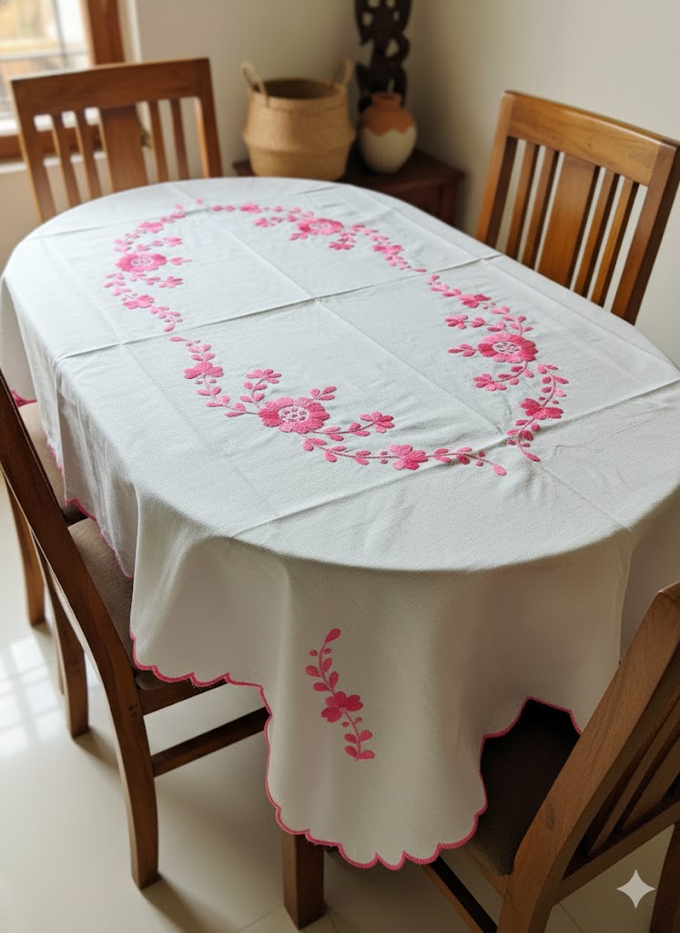 Add a warm touch to your dining space with our beautiful HandEmbroidered Table Cloth. It is made out of soft cotton fabric, this one gives an elegant & authentic vibe to your dining table.